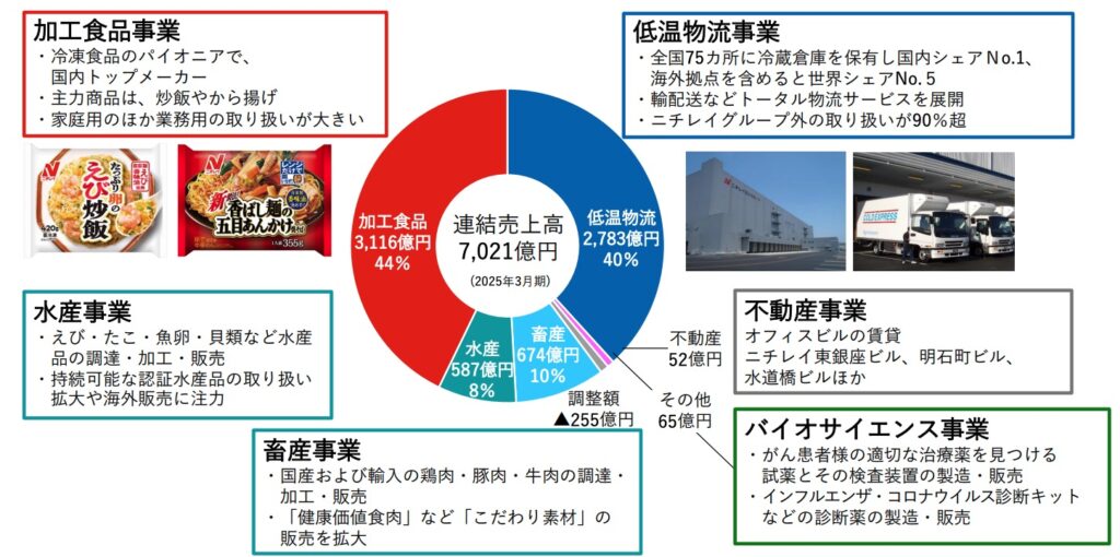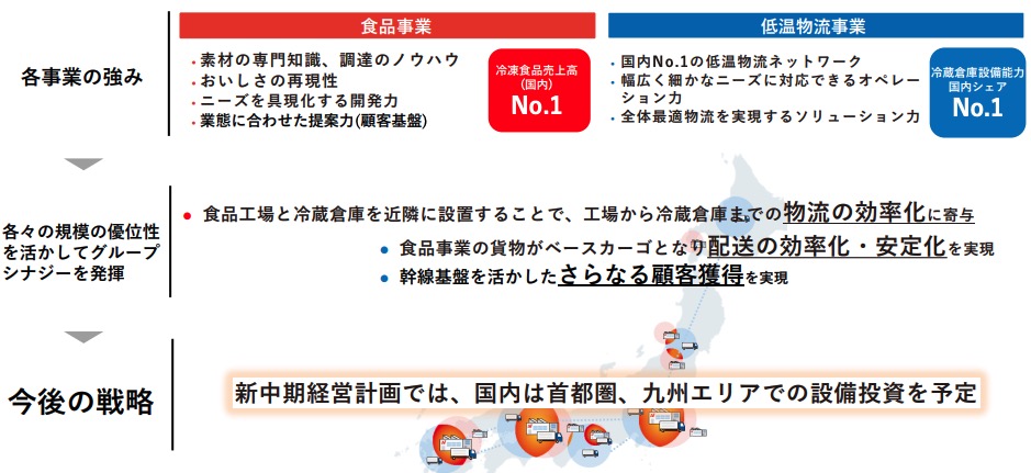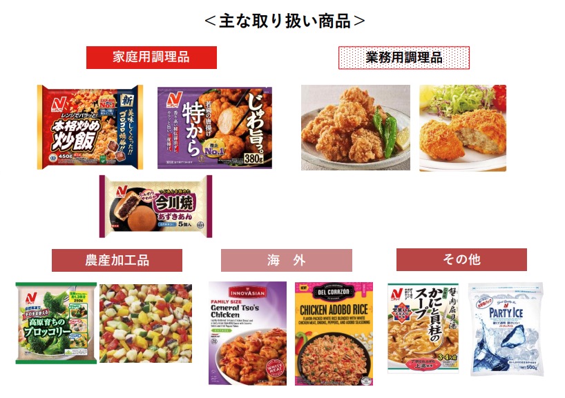 • 主力事業:加工食品(冷凍食品)、低温物流、水産など